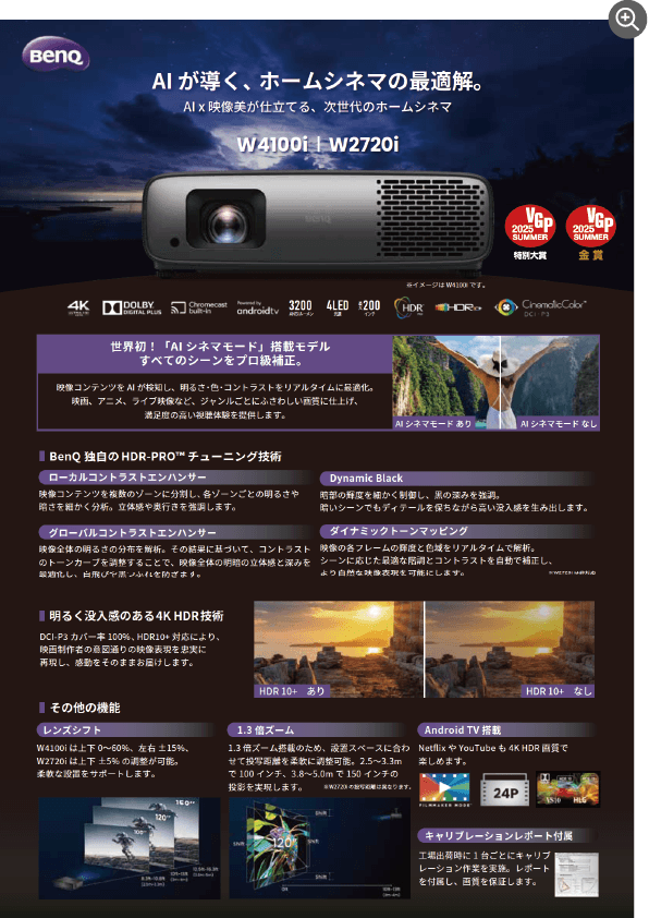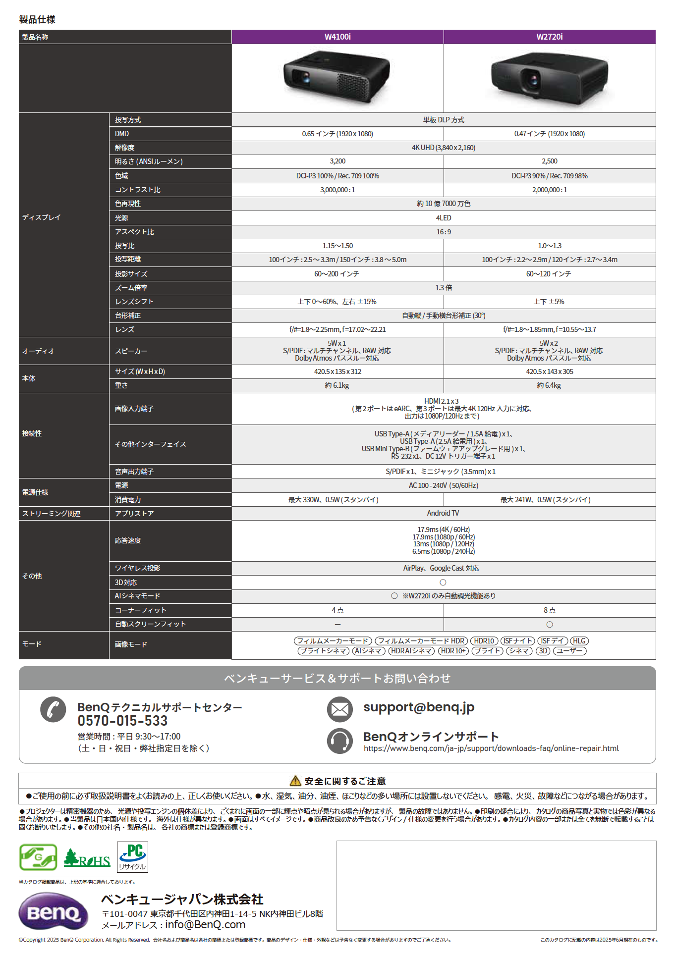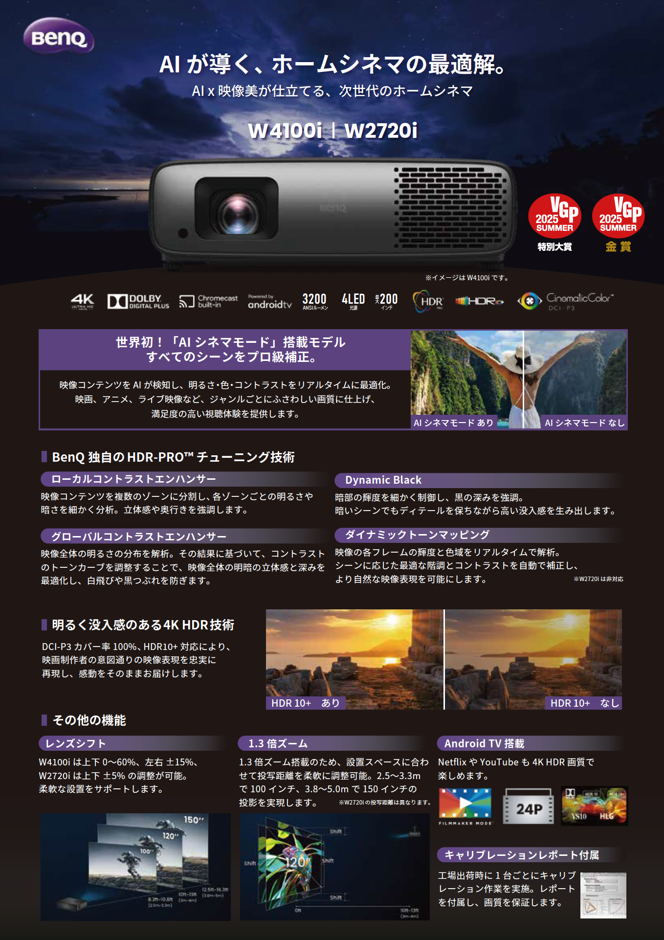 4Kホームシアタープロジェクター「W4100i」「W2720i」の製品カタログです。