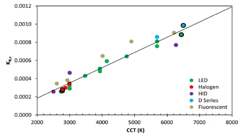 Color Rendering Index Color Rendering Index 根據實際量測,同樣色溫下,LED光源的藍光比例與其他各類傳統光源是一致的。