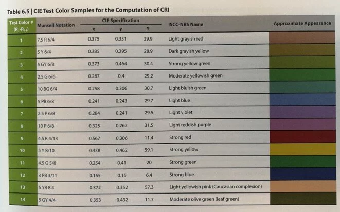 演色性指數是指某種光源在進行照明時,還原自然光照效果的程度;此指數以 Ra 為單位,最大值100代表自然光,越接近100時各種事物的色彩會越明確、越接近自然光照時的顏色。當平均演色性數值偏低時,燈光下的物品顏色容易失真,因此日本的 JIS標準也有明文記載「Ra80以下的光源不適合當作室內的長期照明」,而建議優先選擇 Ra80以上的檯燈。