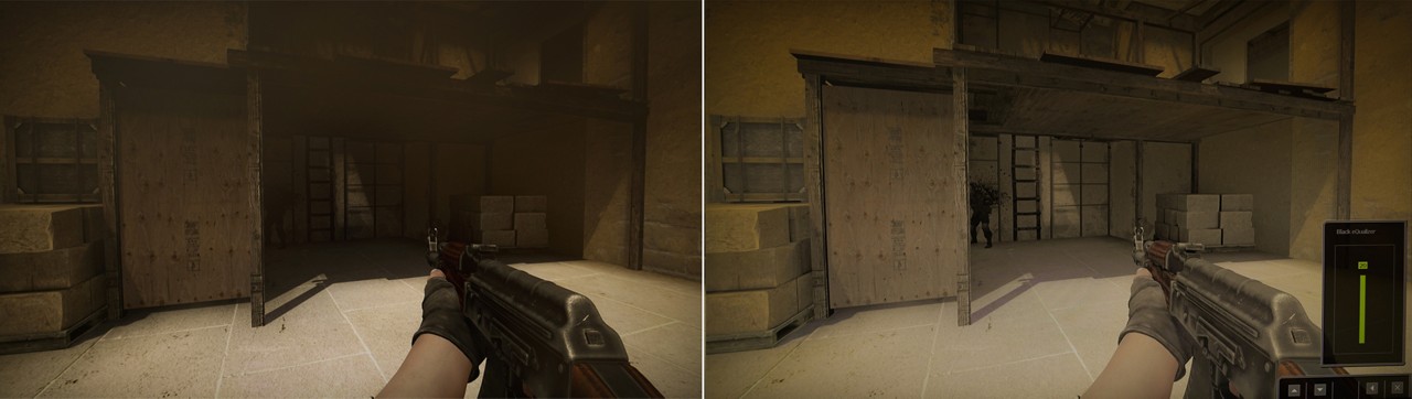 فيما يلي مثال مقارن لخريطتين في لعبة ’كاونتر سترايك: جلوبال أوفينسيف‘- مواقع الاختبار الشائعة في خرائط ’ميراج وإنفيرنو‘. تختلط أنماط الشخصية في لعبة ’كاونتر سترايك: جلوبال أوفينسيف‘ في الخلفية نظرًا لغزارة الألوان الطبيعية.